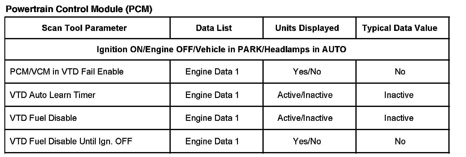 Scan Tool Data List - Powertrain Control Module (PCM)