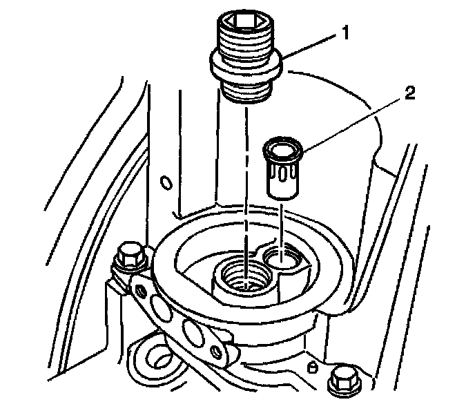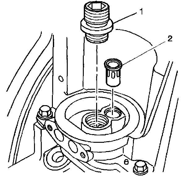 4. Remove the oil filter bypass valve (2).
