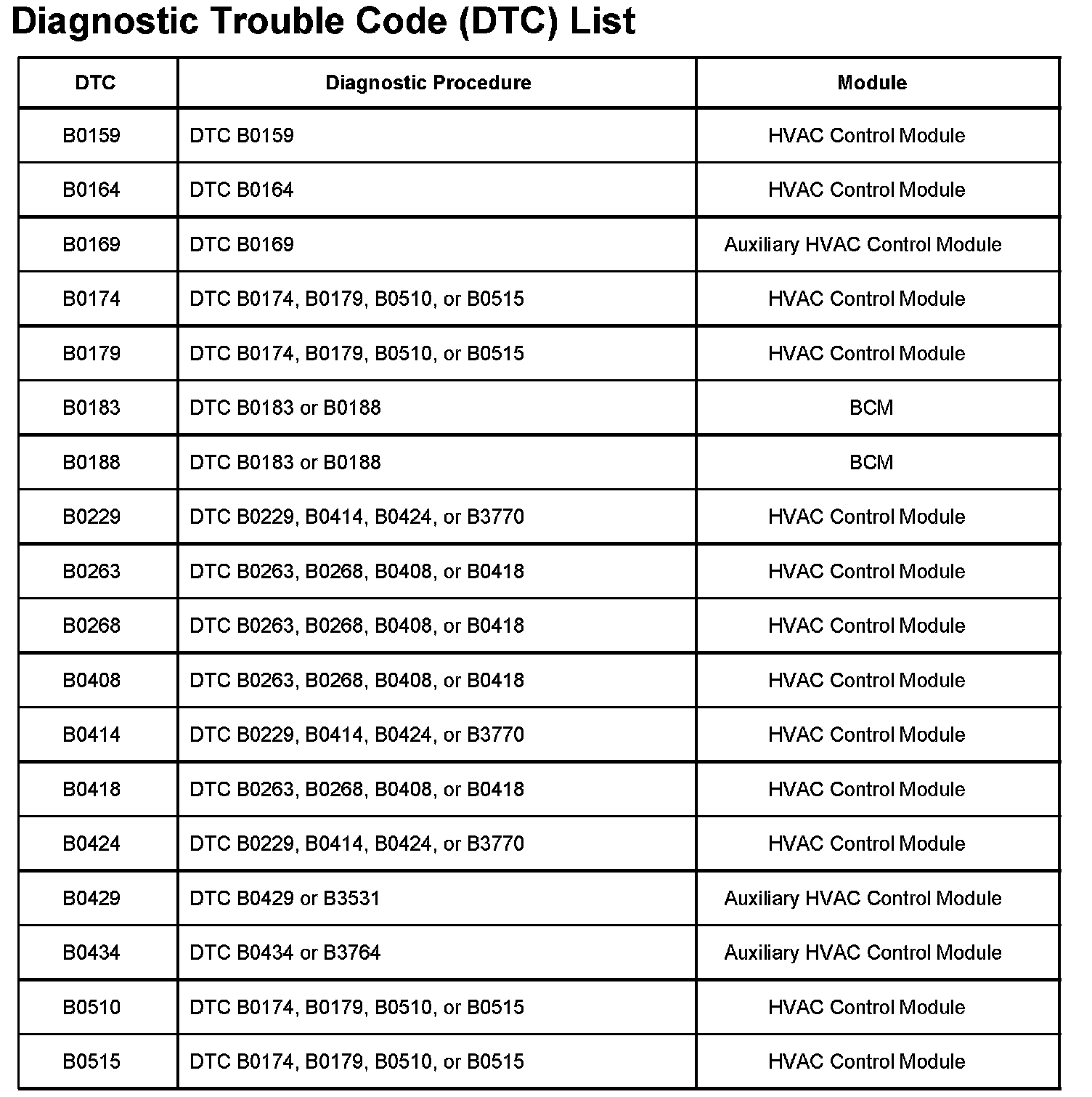 DTC's B0159 - B0515: