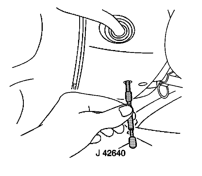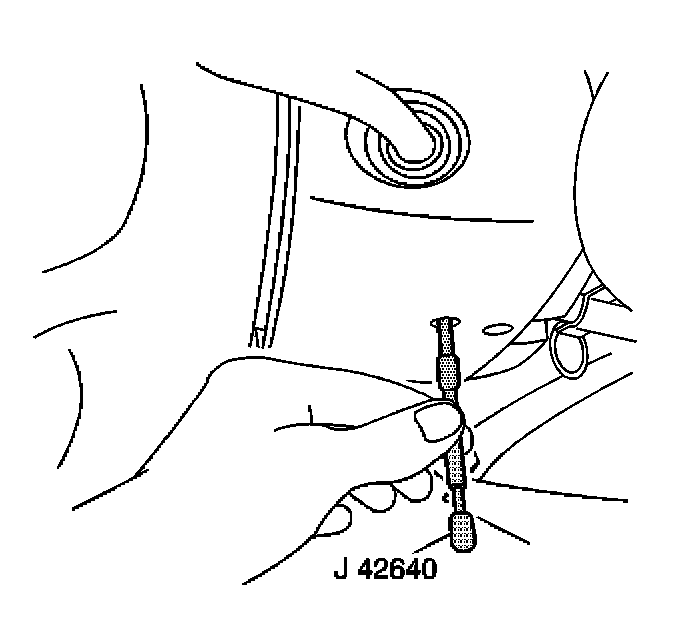 3. Lock the steering column through the access hole in the lower trim cover using J 42640.