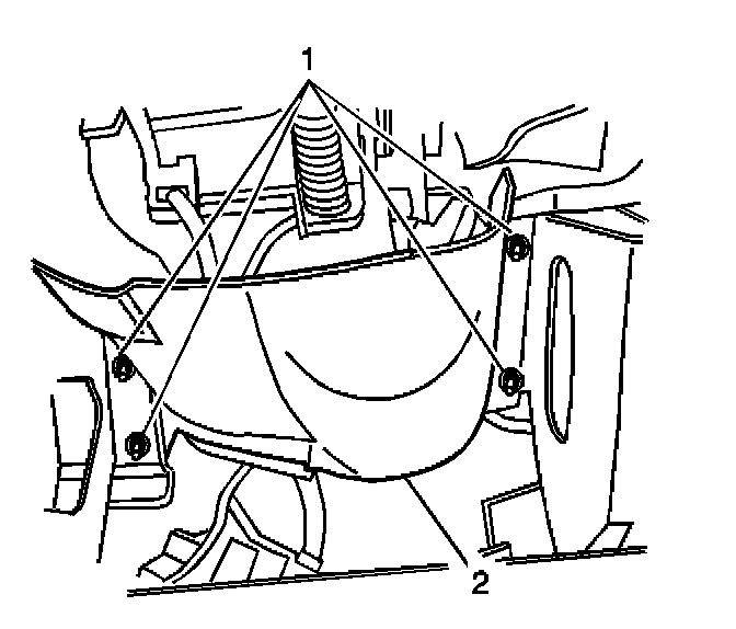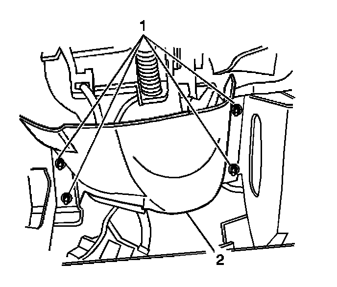 3. Install the nuts (1) which retain the knee bolster deflector to the instrument panel.