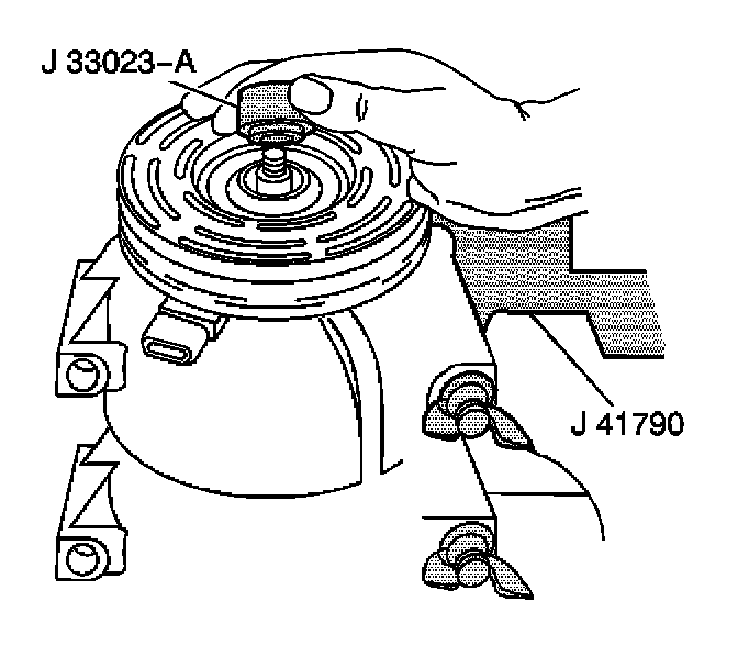 4. Install the J 33023-A onto the front head of the A/C compressor.