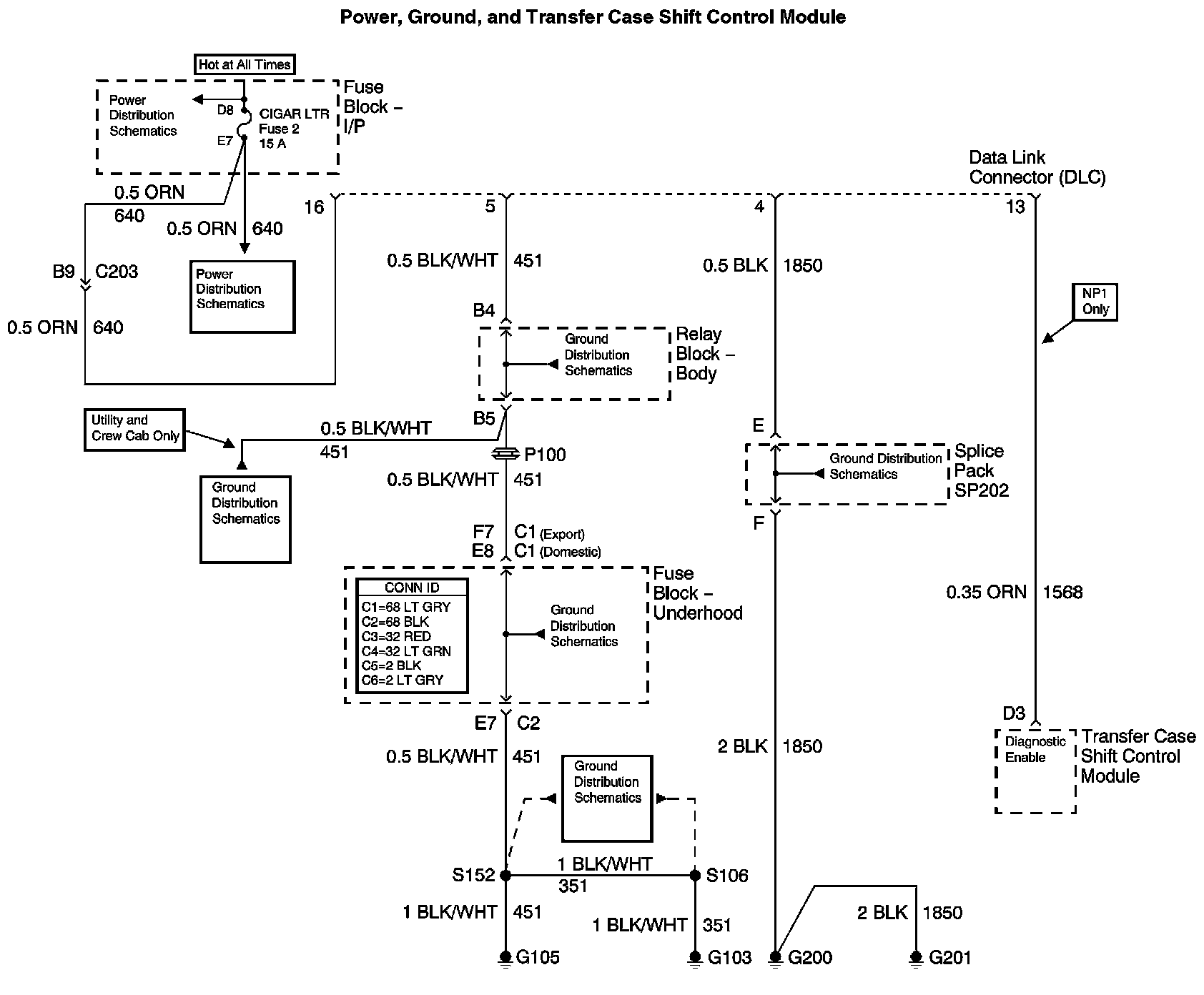 Power, Ground, and Transfer Case Shift Control Module:
