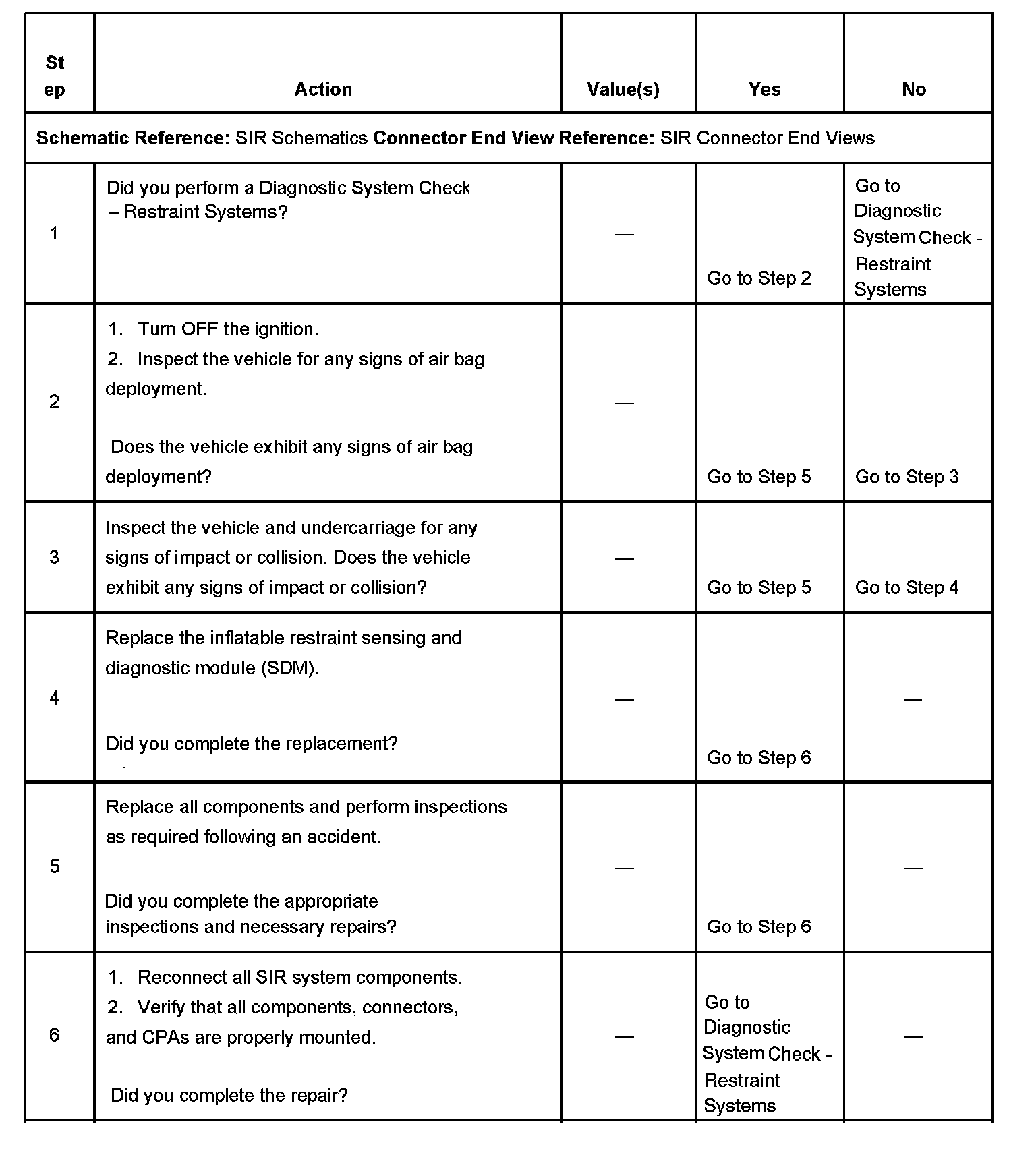 This DTC is set when the inflatable restraint sensing and diagnostic module (SDM) has commanded an air bag deployment with no faults present.