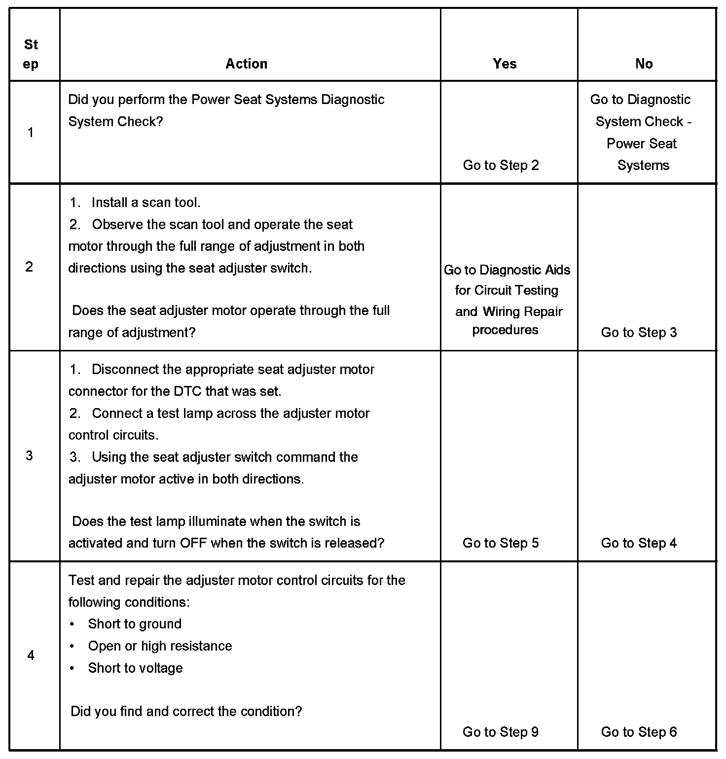 2. Verify that the DTC is current or history by attempting to operate the seat motor for which the code is set.
