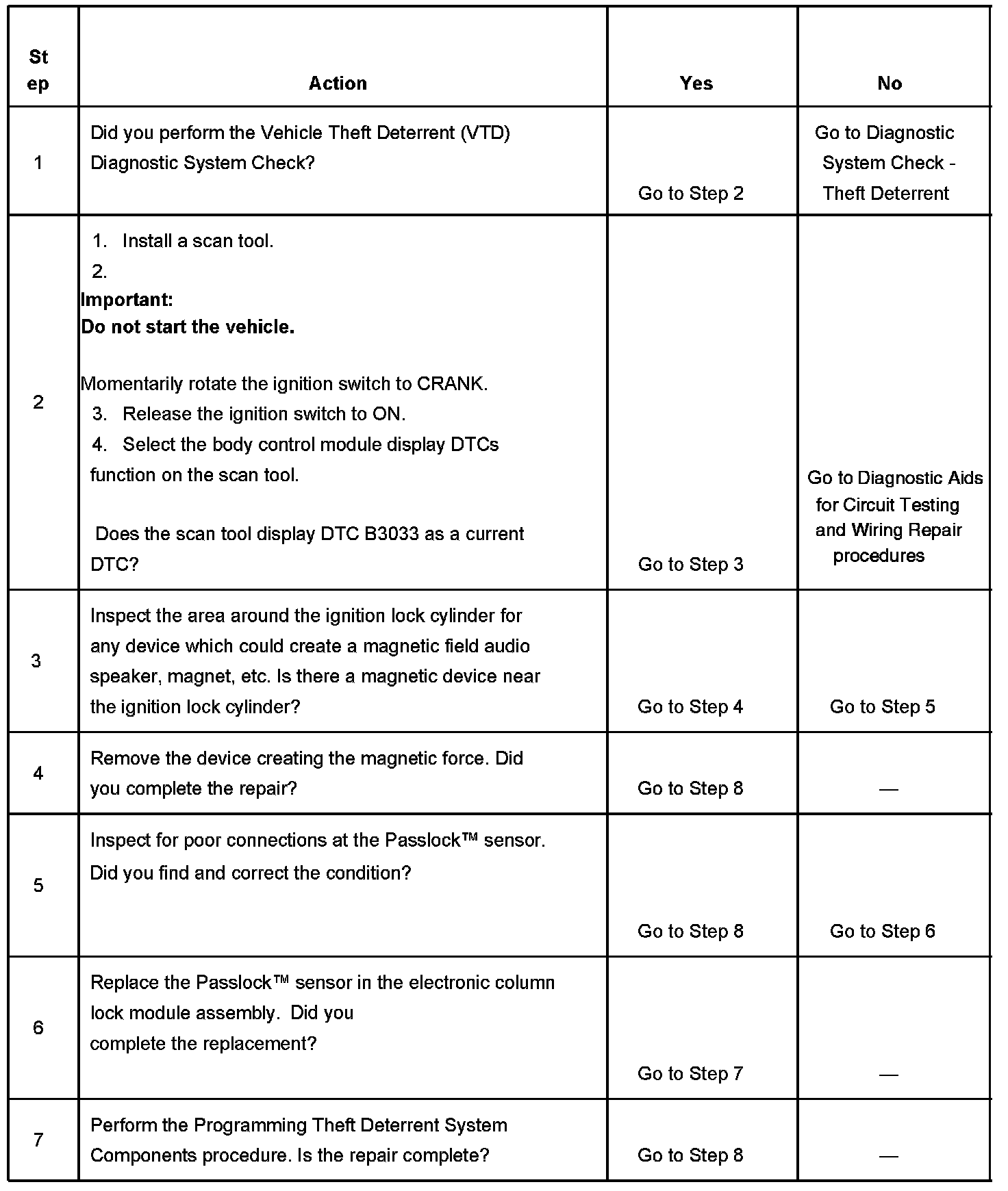 The number below refers to the step number on the diagnostic table.