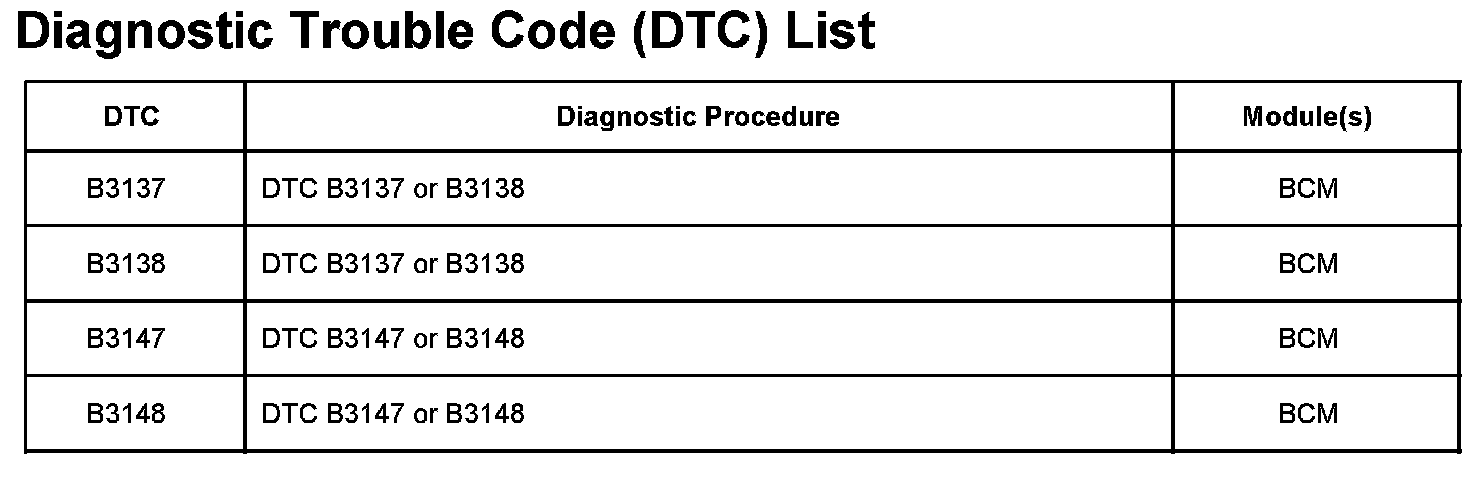 DTCs B3137-B3148: