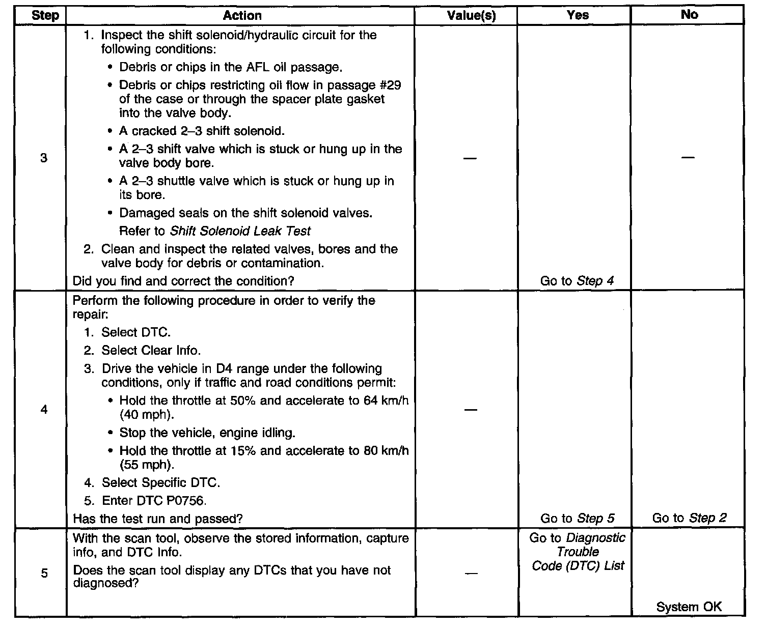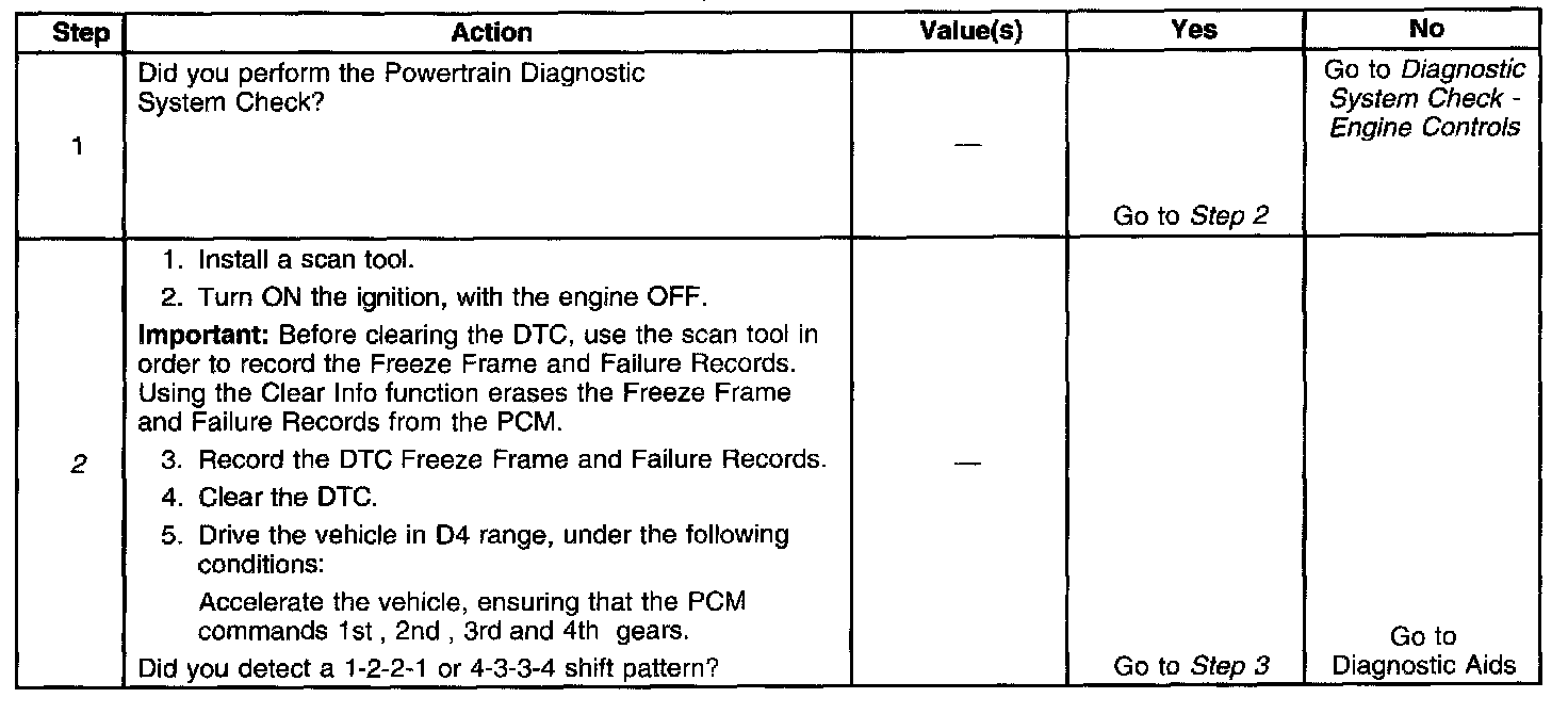 2. This step verifies that the PCM commanded all shifts, that all shift solenoid valves responded corrective' but that all the shifts did not occur.