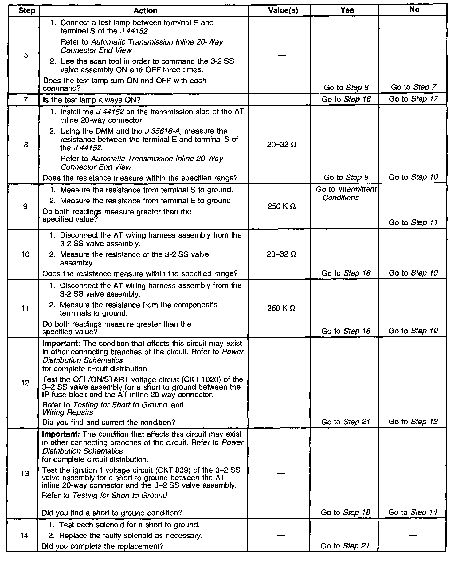 8. This step measures the resistance of the automatic transmission (AT) wiring harness assembly and the 3-2 SS valve assembly.
