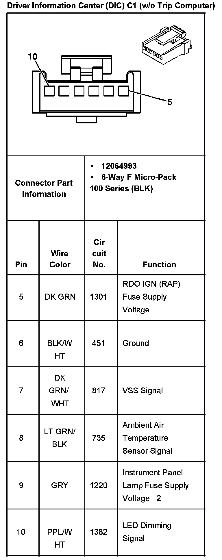 Driver Information Center (DIC) C1 (W/O Trip Computer)