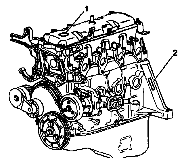 ^ Identification can be made through the use of the Broadcast Code label on the valve rocker arm cover (1) and the use of the partial VIN etched on the left side of the engine block above the starter (2).