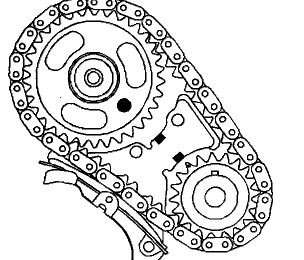 Notice: Align the timing marks before removing the timing chain. If it is necessary to turn either the camshaft or the crankshaft with the timing chain removed, loosen or remove the valve rocker arms. Turning either the crankshaft or camshaft with the timing chain removed may cause the pistons to contact the valves, resulting in damage.