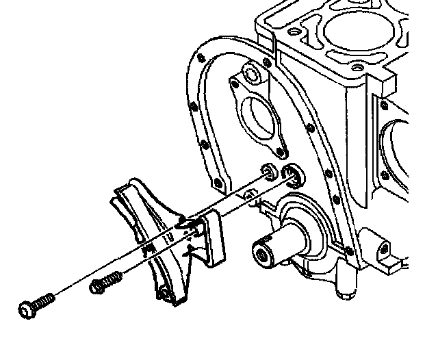 Important: Before removing the timing chain, measure the distance between the hole in the bracket and the unworn surface of the timing chain tensioner shoe.