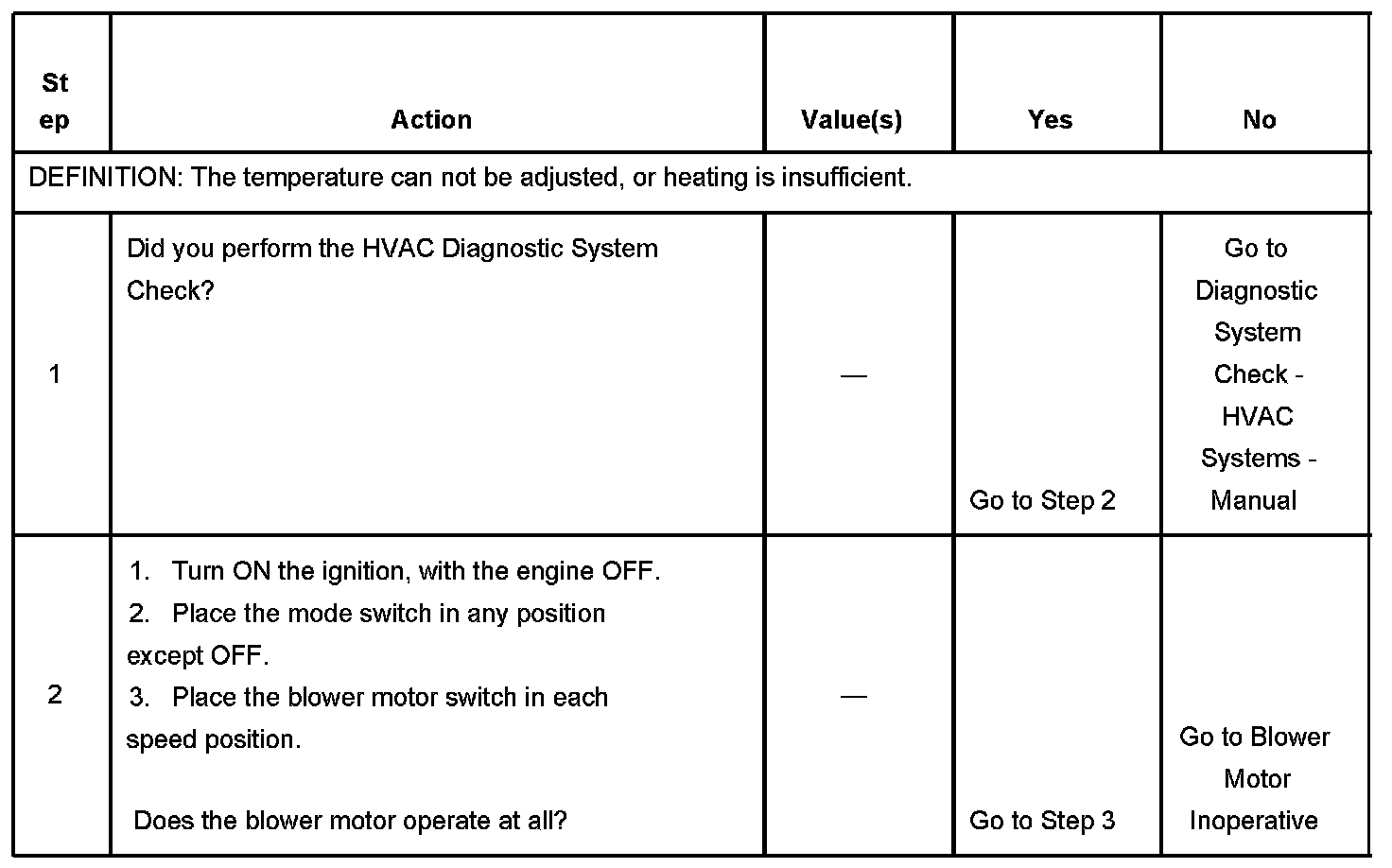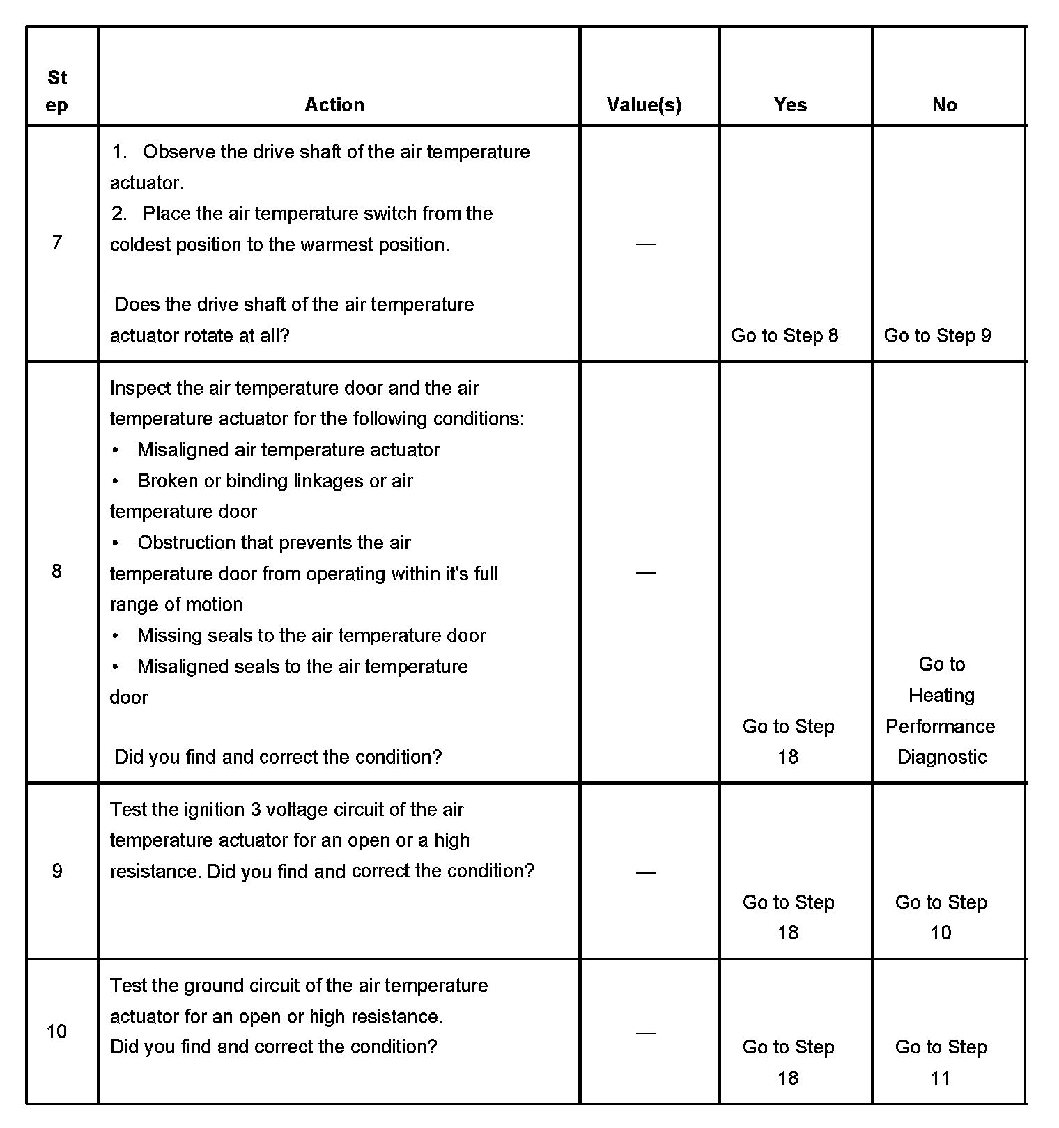 The number(s) below refer to the step number(s) on the diagnostic table.