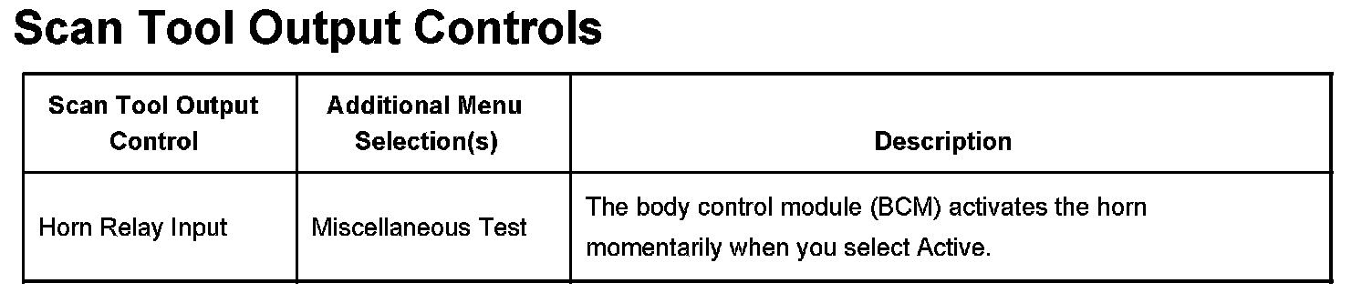 Scan Tool Output Controls: