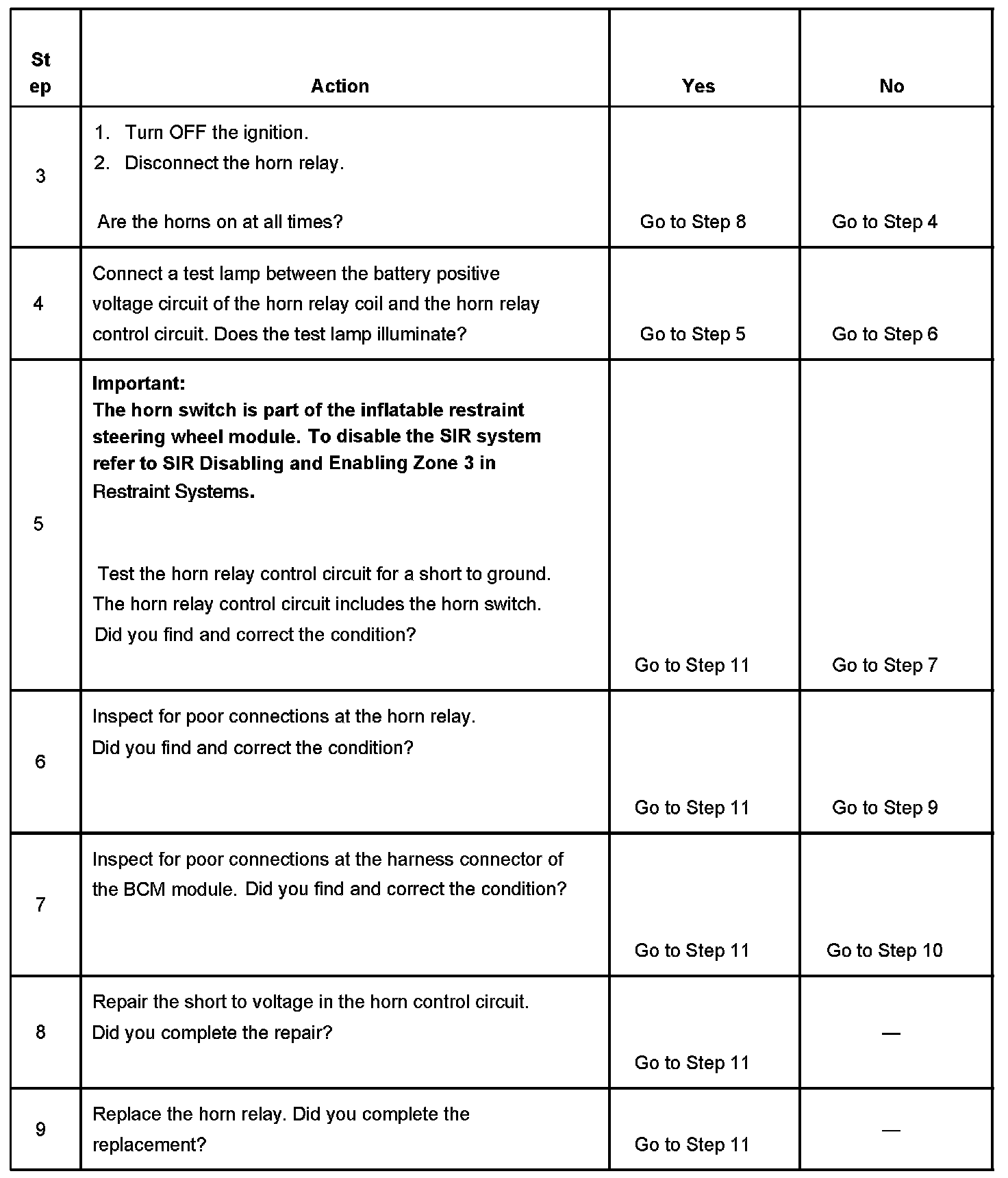 5. The horn relay control circuit includes the horn switch. The horn switch must be tested for a short to ground when testing the relay control circuit.