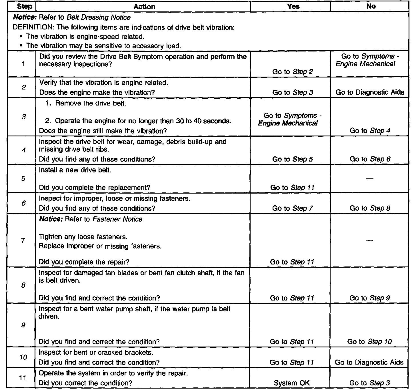 Drive Belt Vibration DiagnosisDiagnostic Aids