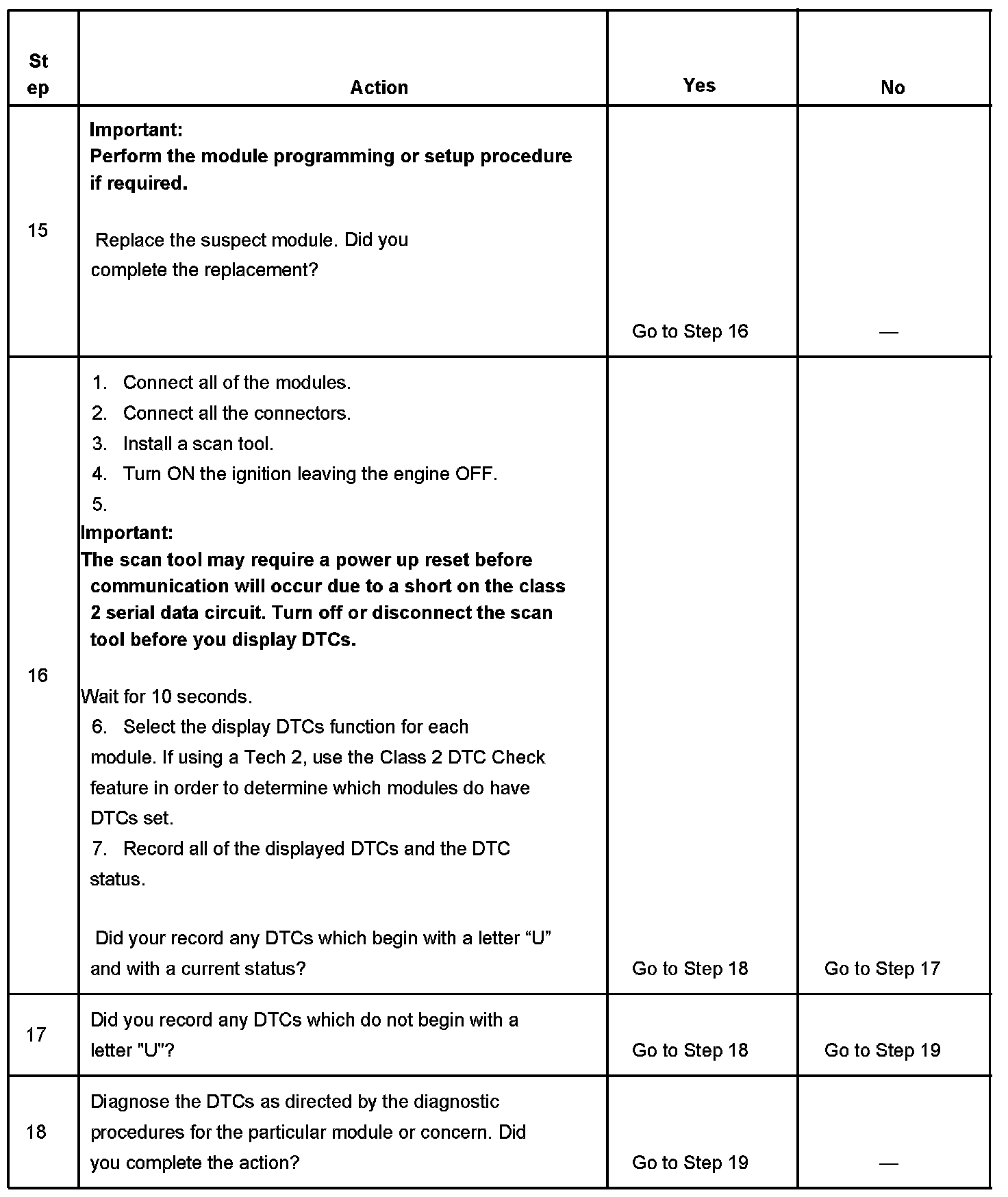 2. A partial loss of communication in the class 2 serial data circuit uses a different procedure than a total loss of communication of the class 2 serial data circuit.