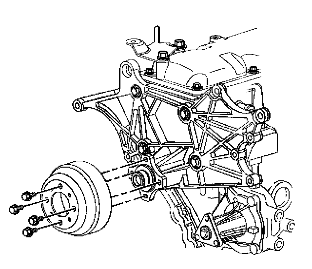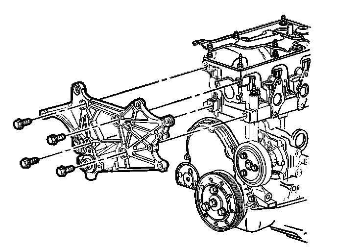 10. Remove the bolts holding the generator mounting bracket to the engine.