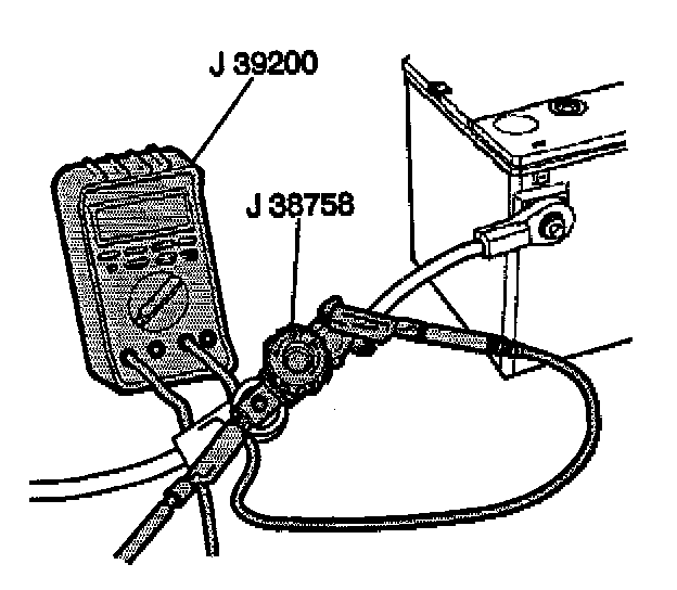 IMPORTANT: If an ammeter other than the J 39200 is used, ensure that the vehicle does not have a high current drain that would damage the ammeter when connected to the circuit. This can be done using the following procedure: