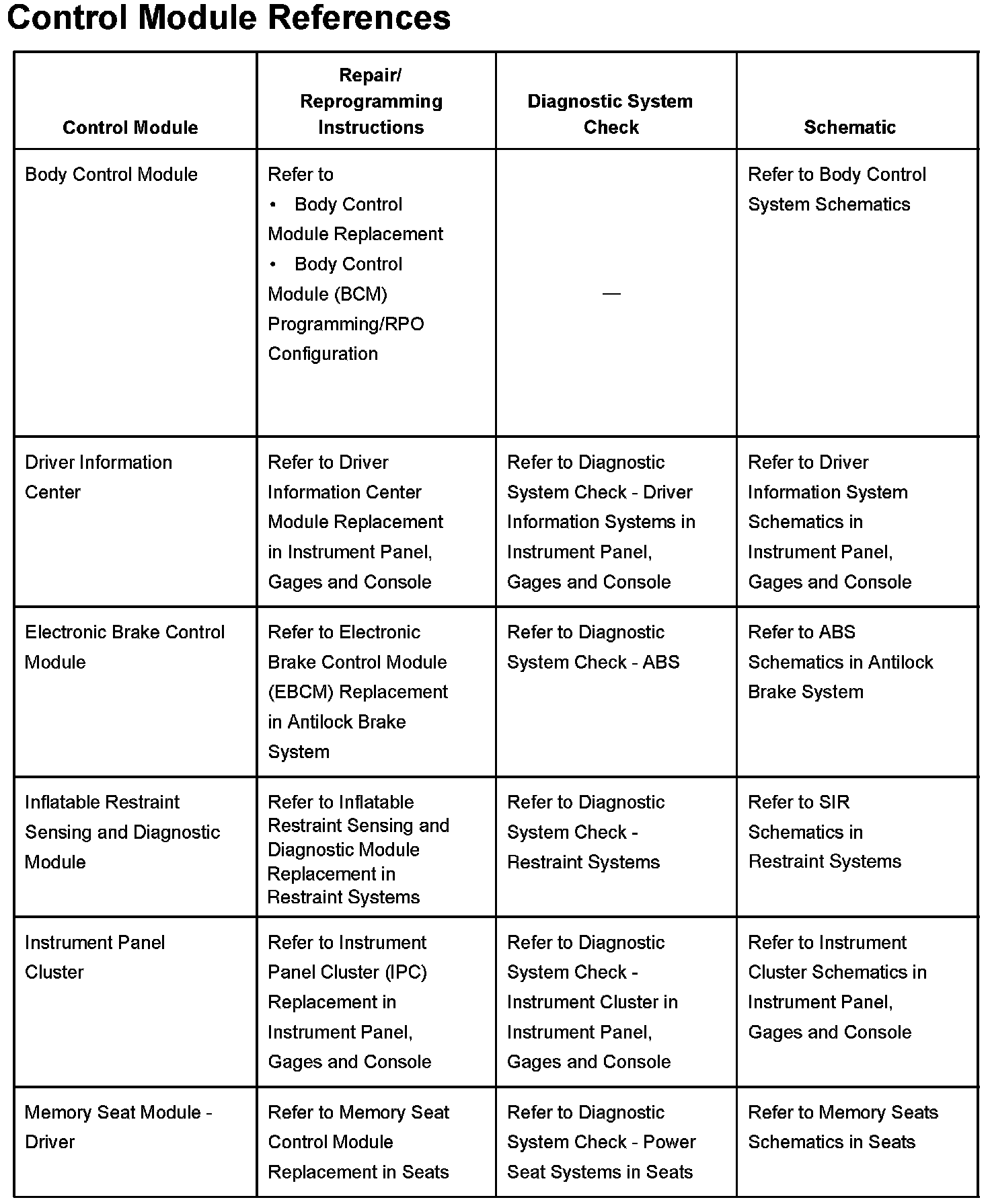 Control Module References