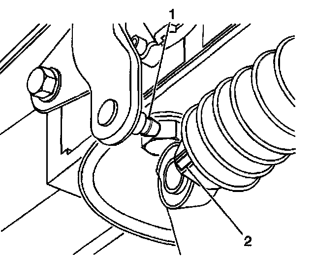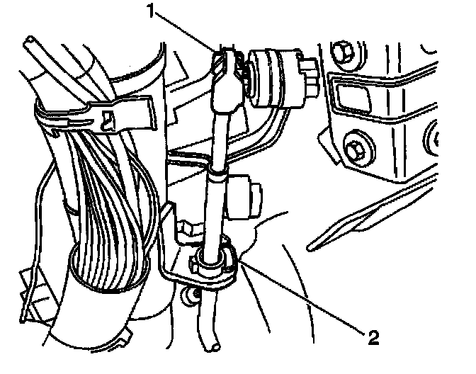 16. Following the adjustment procedure, install the range selector cable (2) to the range selector cable lever ball stud (1). Refer to Automatic Transmission Range Selector Cable Adjustment.