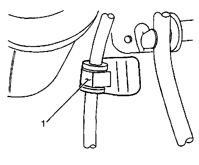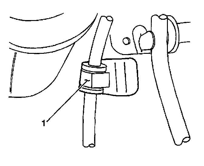 6. Remove the retainer (1) from the range selector cable and transmission bracket.