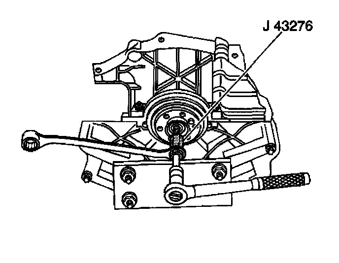 Notice: When using the J 43276 Clutch Pilot Bearing Remover always secure the J 43276-1 Clutch Pilot Bearing Remover tool body using a wrench. Do not allow the J 43276-1 tool body to rotate. Failing to do so will cause damage to the J 43276-1 tool body.