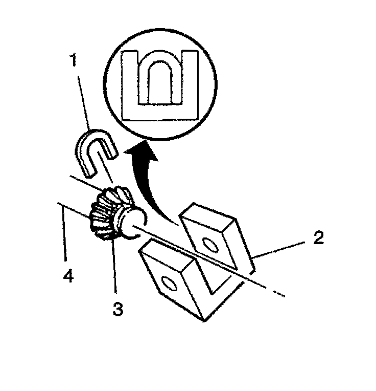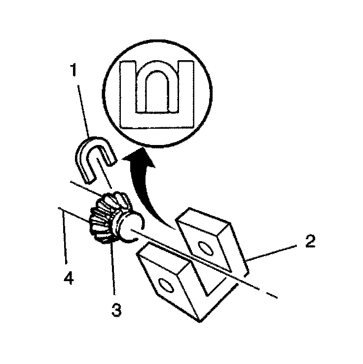 4. On axles with a locking differential, place the axle shaft lock (1) on the axle shaft (3) so that the ends are flush with the thrust block (2).