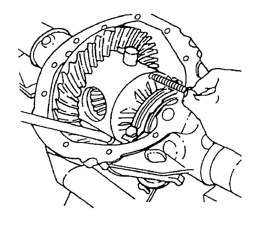 9. On axles with a locking differential, remove the shaft part way. Rotate the case until the pinion shaft touches the housing.