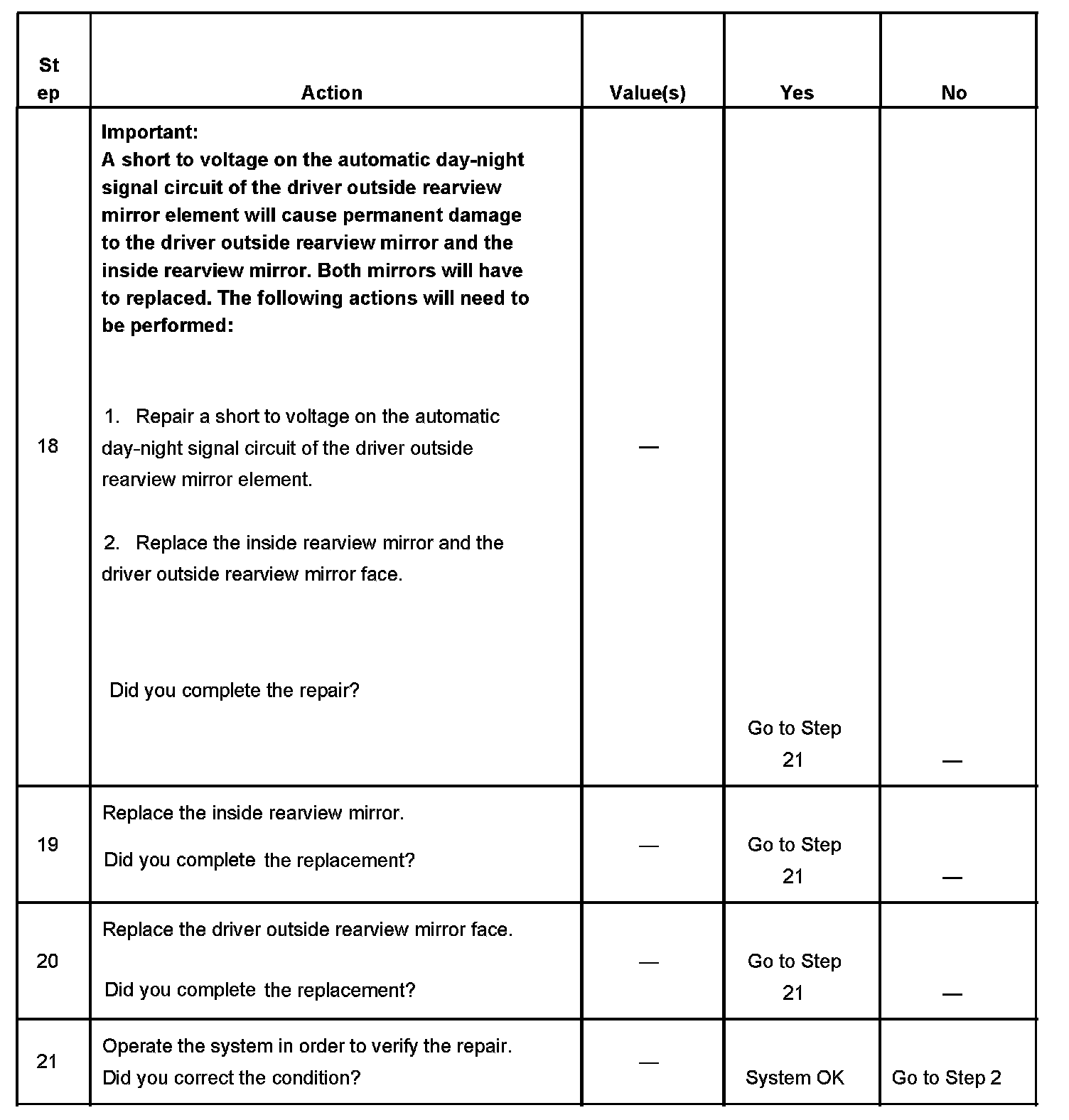 Automatic Day/Night Mirror Inoperative - Mirrors