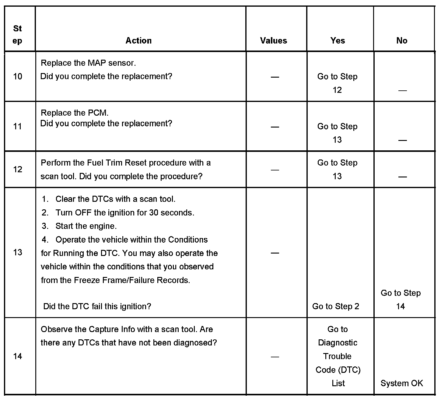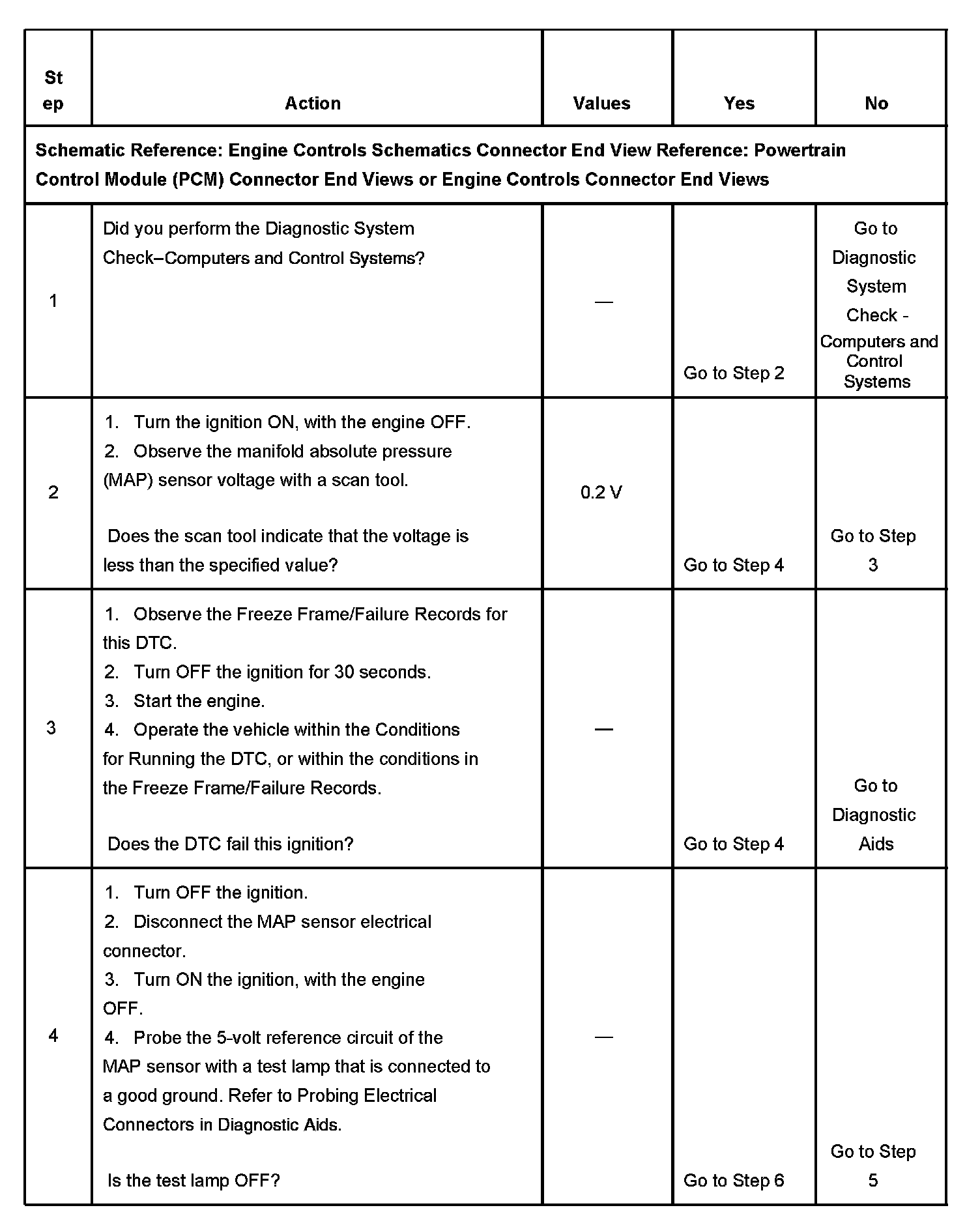If the PCM detects a MAP sensor signal voltage that is excessively low, DTC P0107 will set.