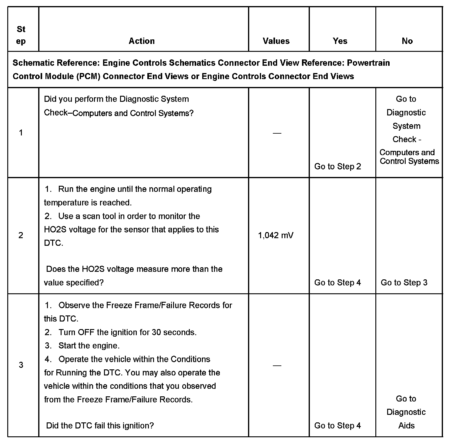 The PCM detects that the HO2S 2 parameter is more than 1,042 mV for 50 seconds.