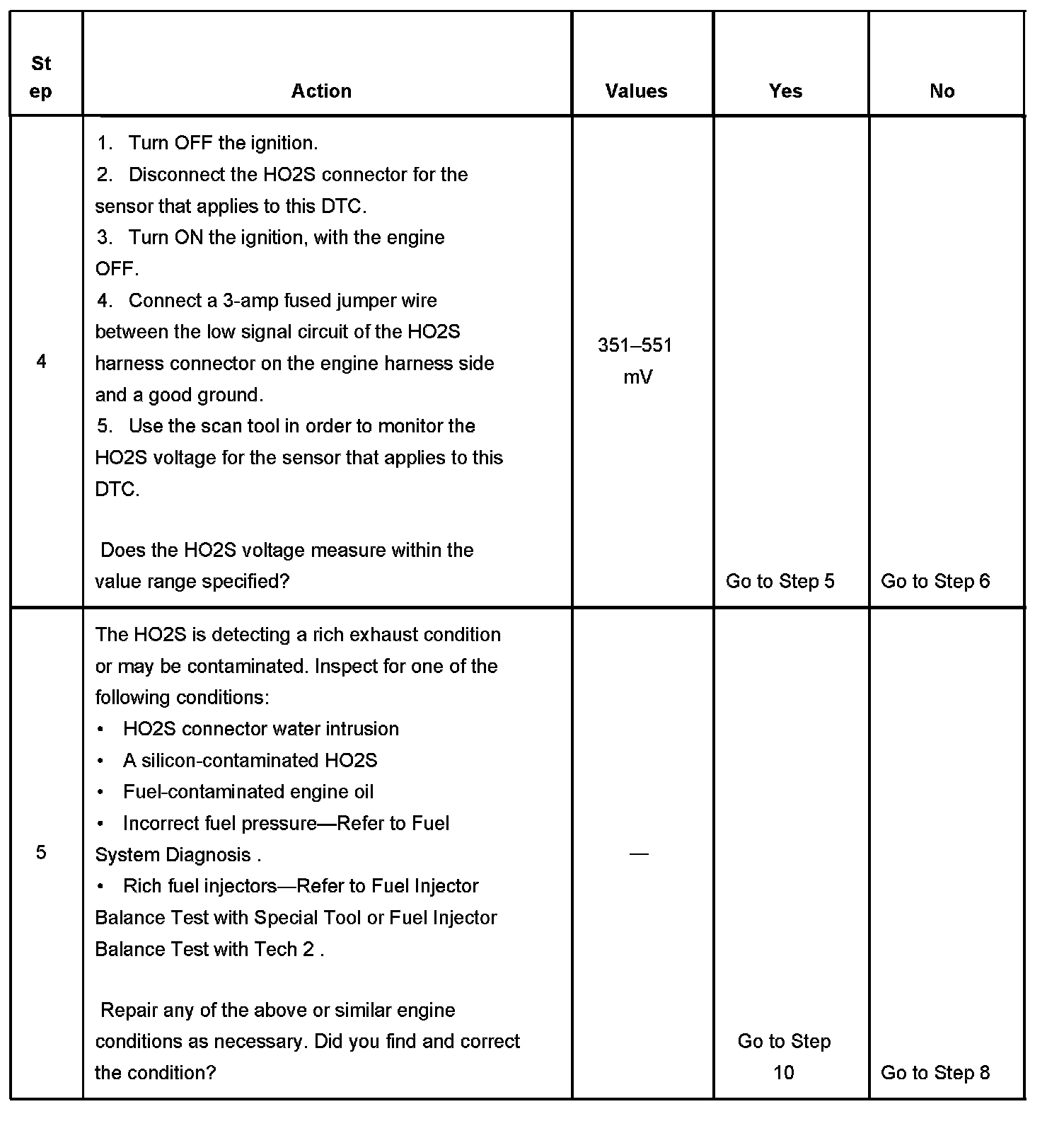 6. This step checks the HO2S HIGH signal circuit for a short to voltage.