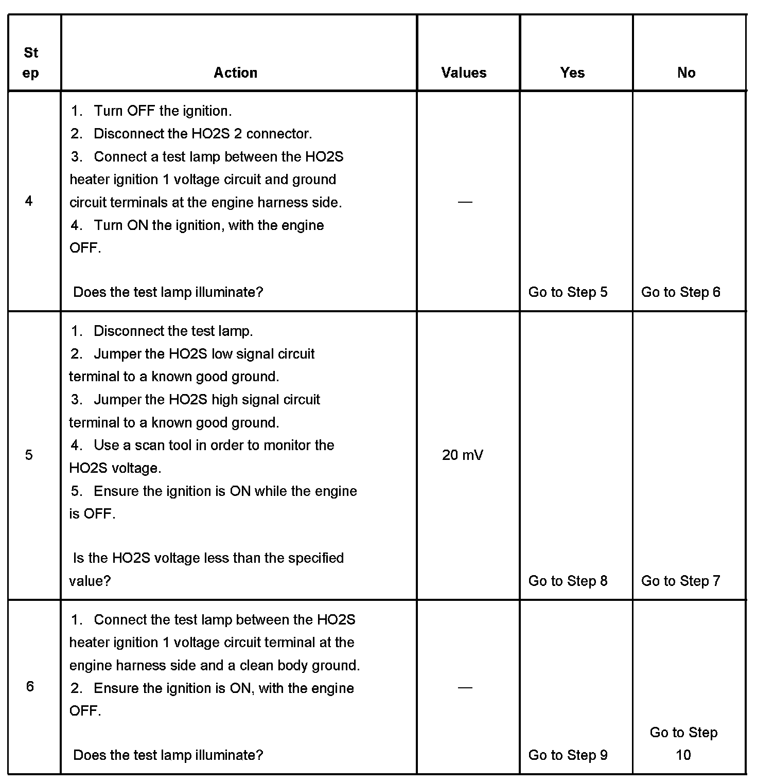 4. This step checks for proper HO2S heater ignition 1 voltage and ground supply.