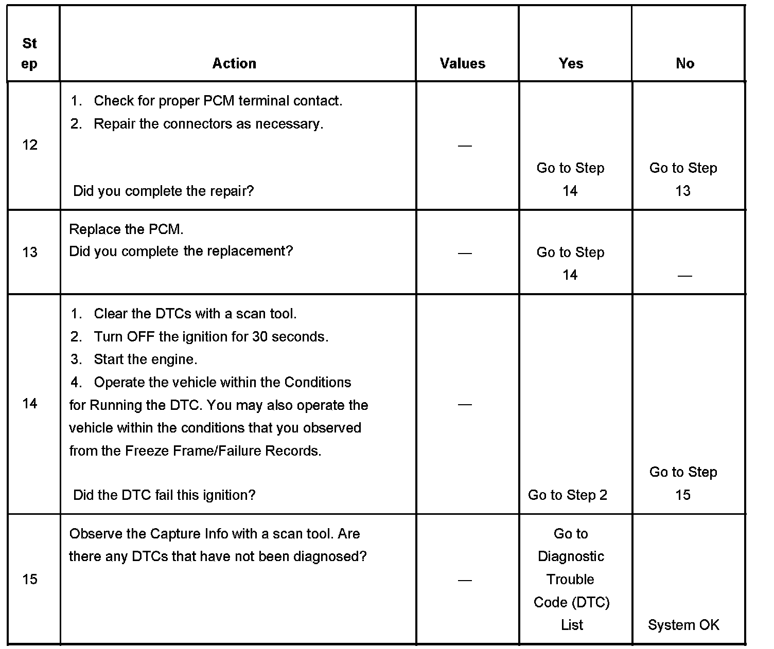 - A current DTC, Last Test Failed, clears when the diagnostic runs and passes.