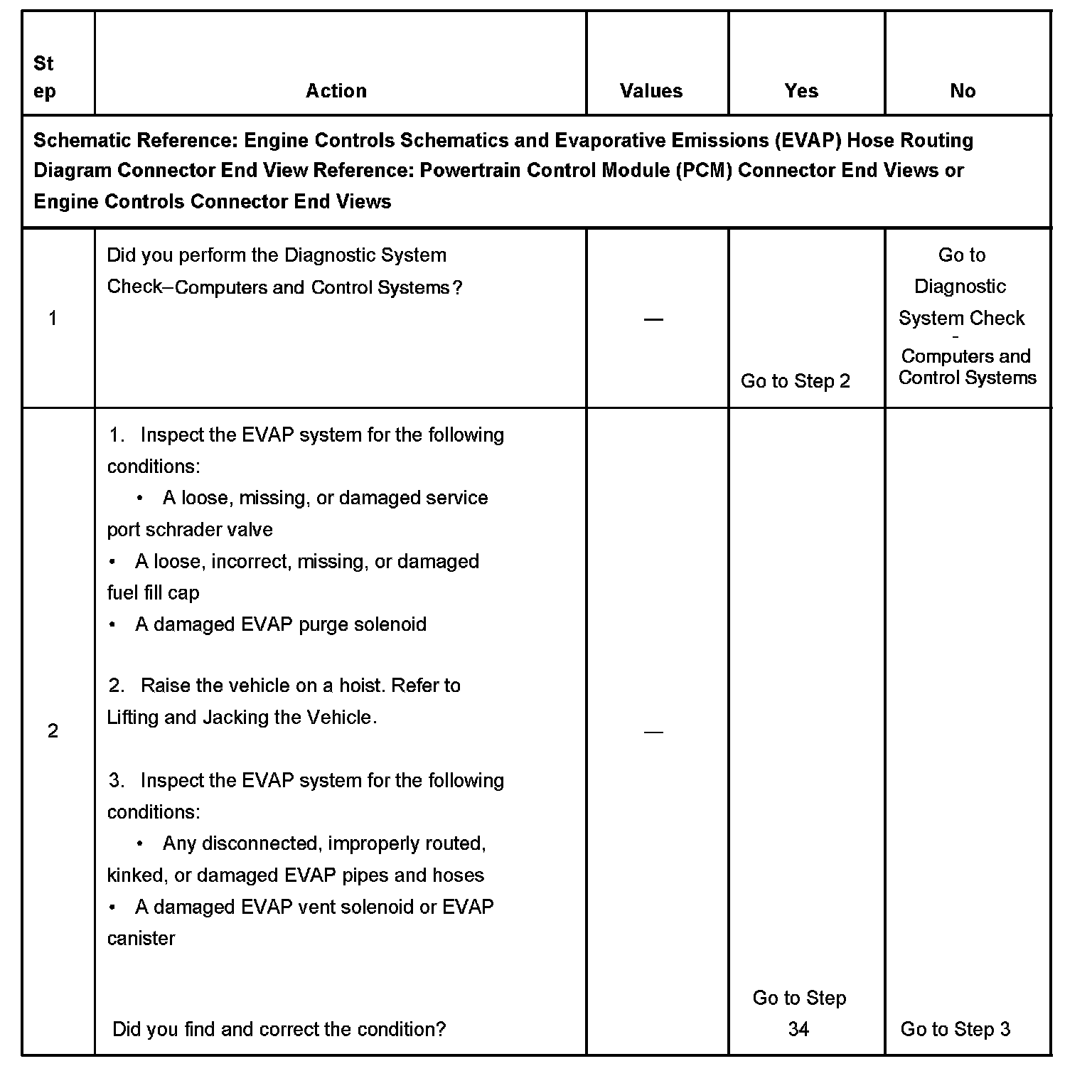 The numbers below refer to the step numbers on the diagnostic table.