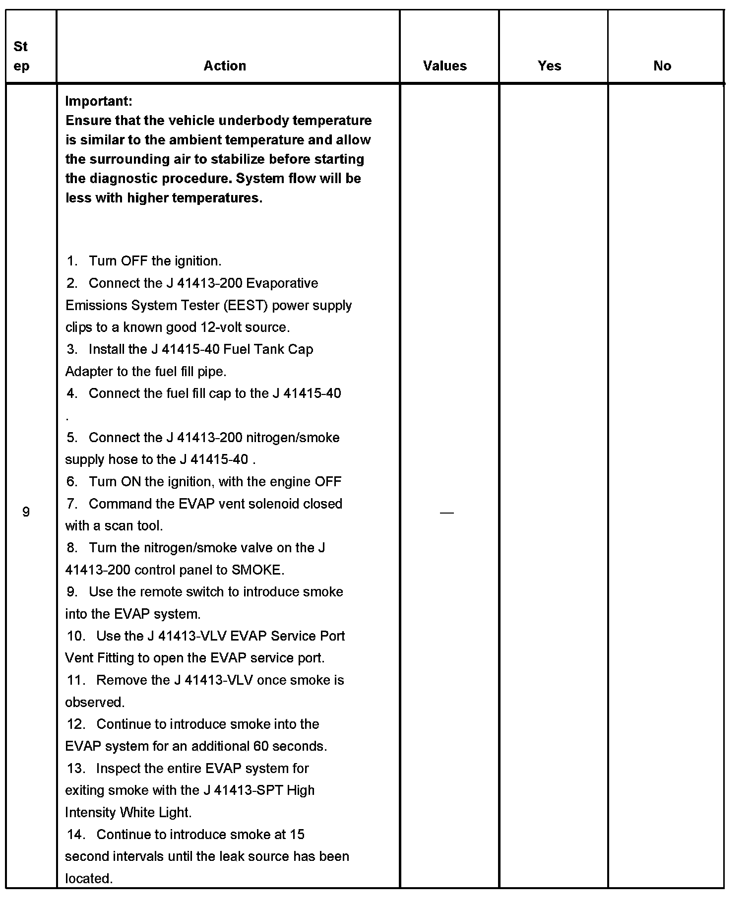 - To help locate intermittent leaks, use the J 41413-200 Evaporative Emissions System Tester (EEST) to introduce smoke into the EVAP system. Move all EVAP components while observing smoke with the J 41413-SPT High Intensity White Light.