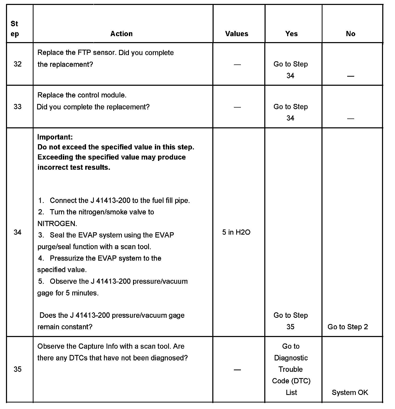 11. This test verifies that the fuel tank pressure (FTP) sensor is accurate. An FTP sensor that does not correctly respond to vacuum, or pressure may cause this DTC to set.