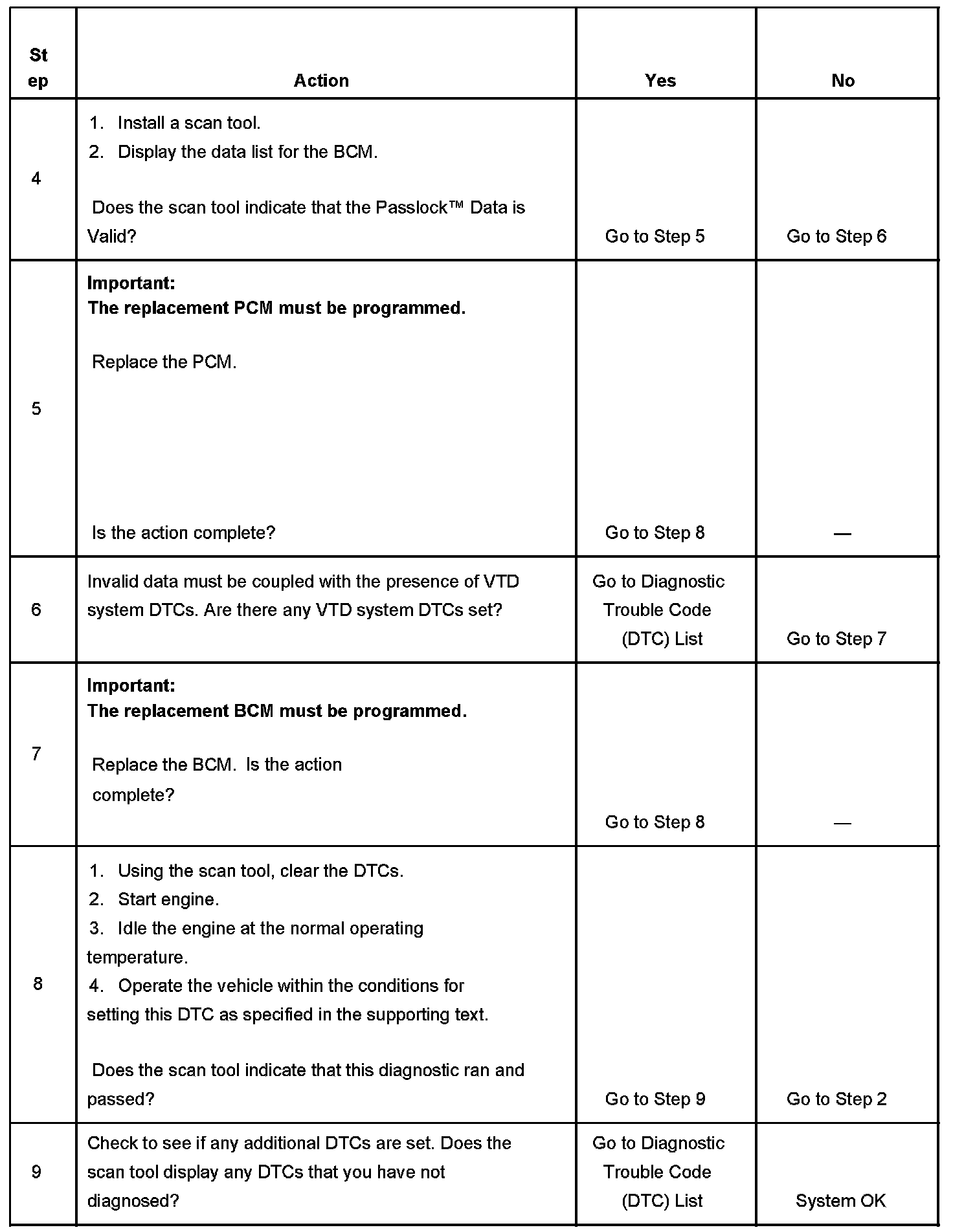 6. A Passlock(tm) theft deterrent, or BCM DTC being set indicates that a Passlock(tm) component may be malfunctioning.