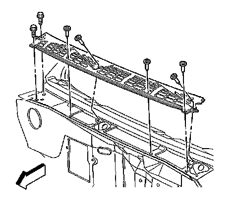 5. Remove the screws that secure the center vent grille panel to the cowl.