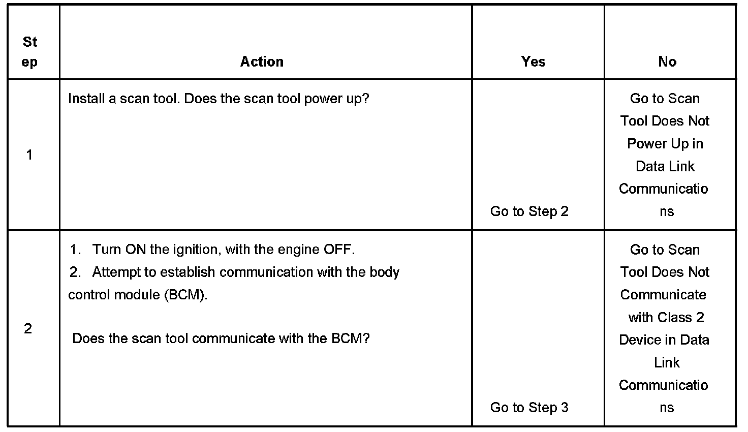 2. Lack of communication may be due to a partial malfunction of the class 2 serial data circuit or due to a total malfunction of the class 2 serial data circuit.