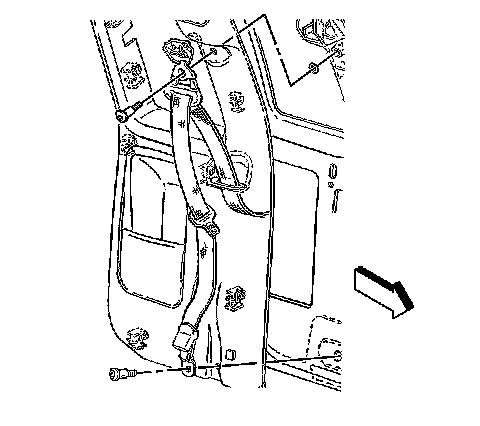 1. Remove the upper and the lower seat belt anchor bolts.