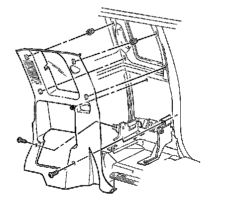 4. Remove the screws that retain the body side trim panel to the vehicle.