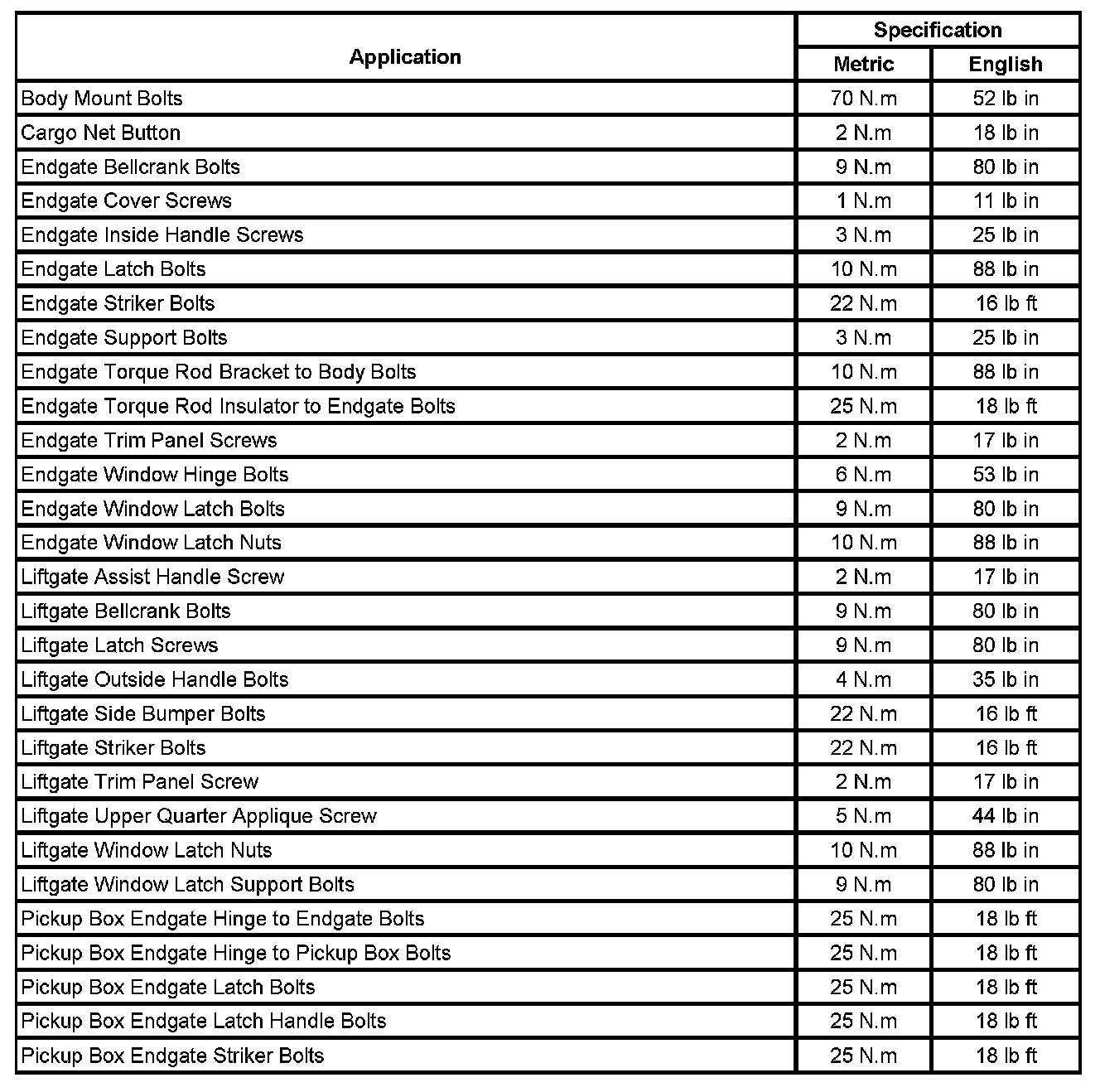 Fastener Tightening Specifications