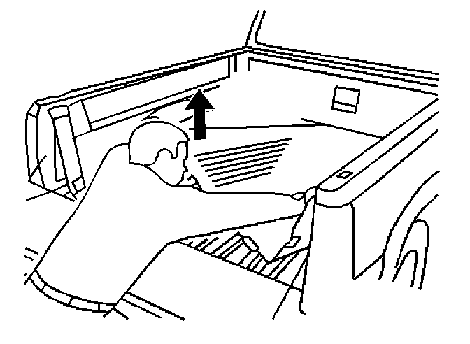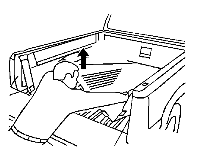 2. Standing at the rear of pickup, lift in the center of a pickup box bedliner and remove from under the bedrails.