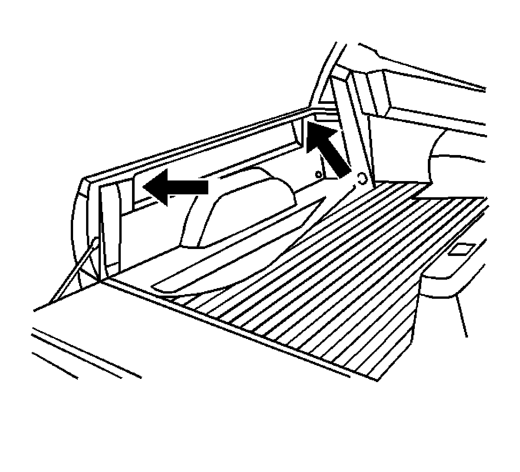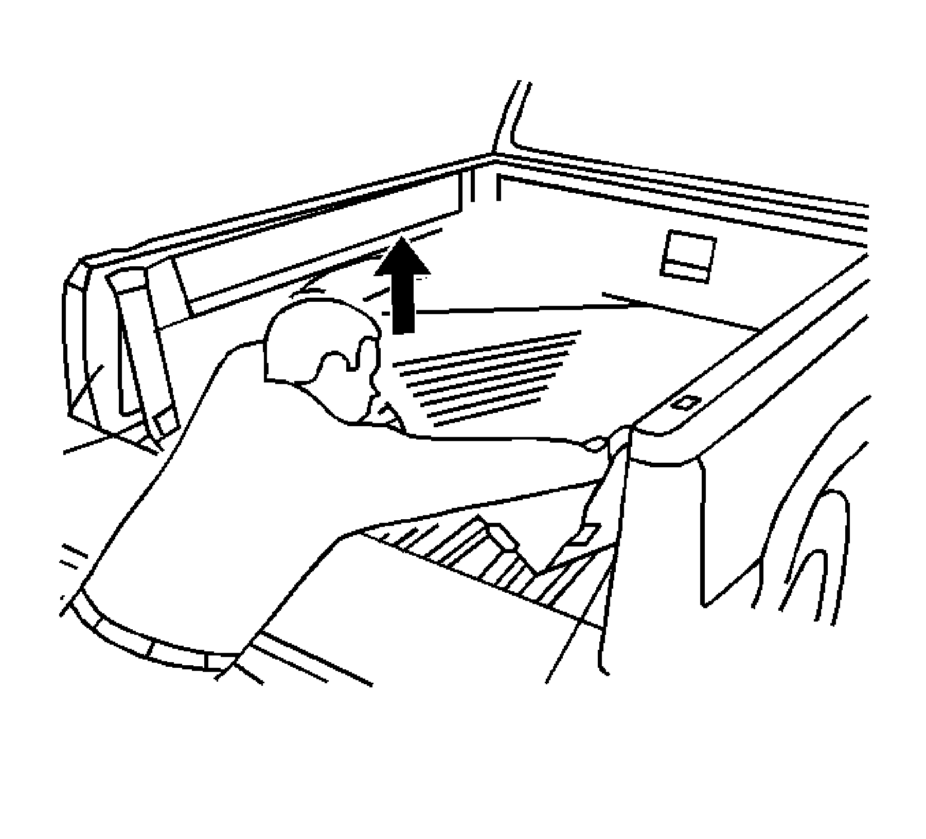 2. Standing at the rear of pickup, lift in the center of a pickup box bedliner and remove from under the bedrails.