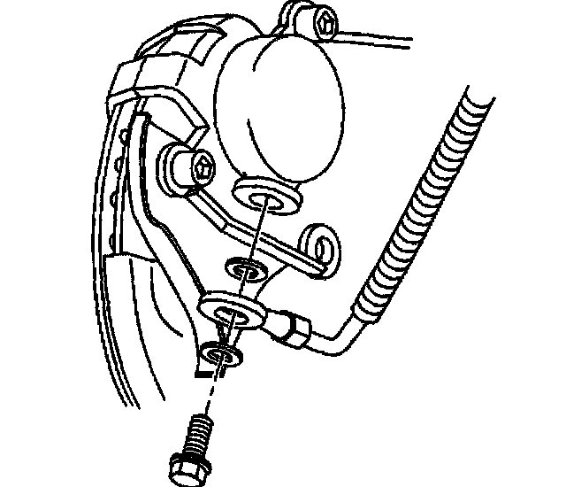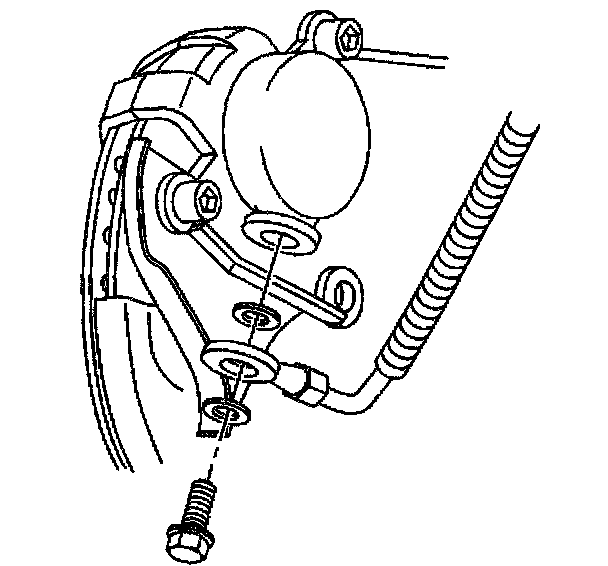 7. Remove the hose front flex brake hose bolt and gaskets from the brake caliper.