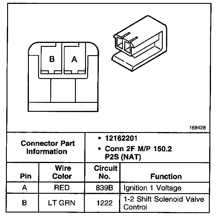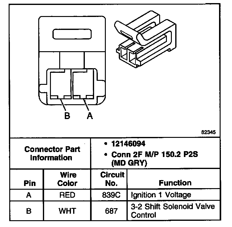 1-2 Shift Solenoid (SS) Valve Connector, Wiring Harness Side: