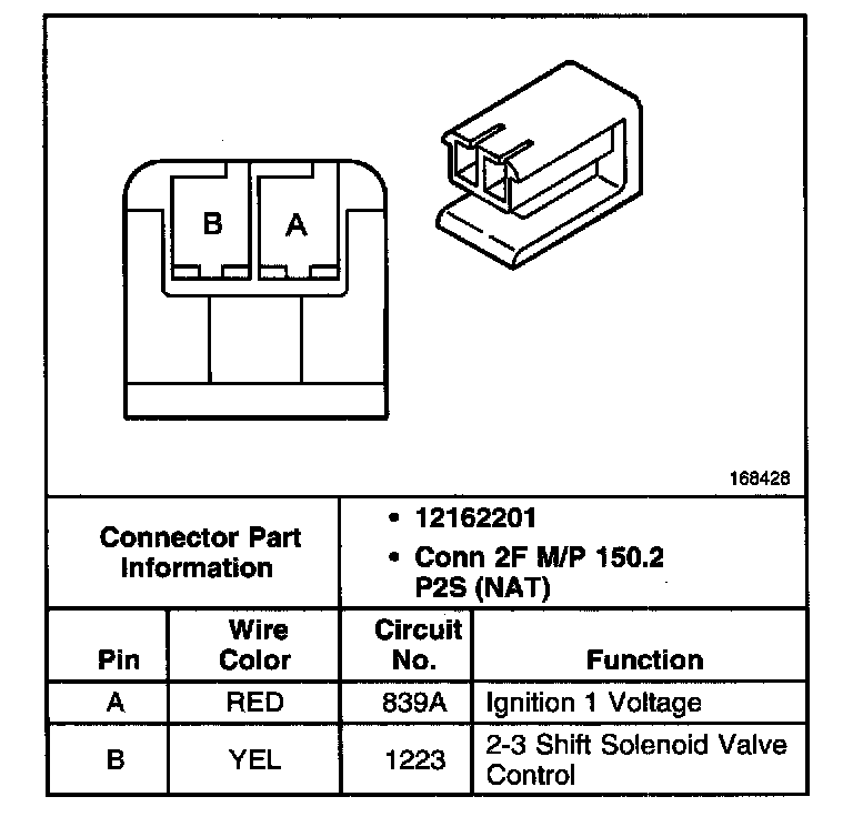 2-3 Shift Solenoid (SS) Valve Connector, Wiring Harness Side: